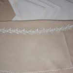 Setul compus din 1 x Fata de masa si 8 Servetele cu bordura brodata este lucrat manual cu grija la fiecare detaliu in atelierul nostru si vine ambalat intr-un frumos saculet textil decorativ, fiind potrivit si pentru a fi oferita in dar.