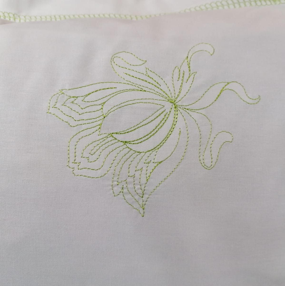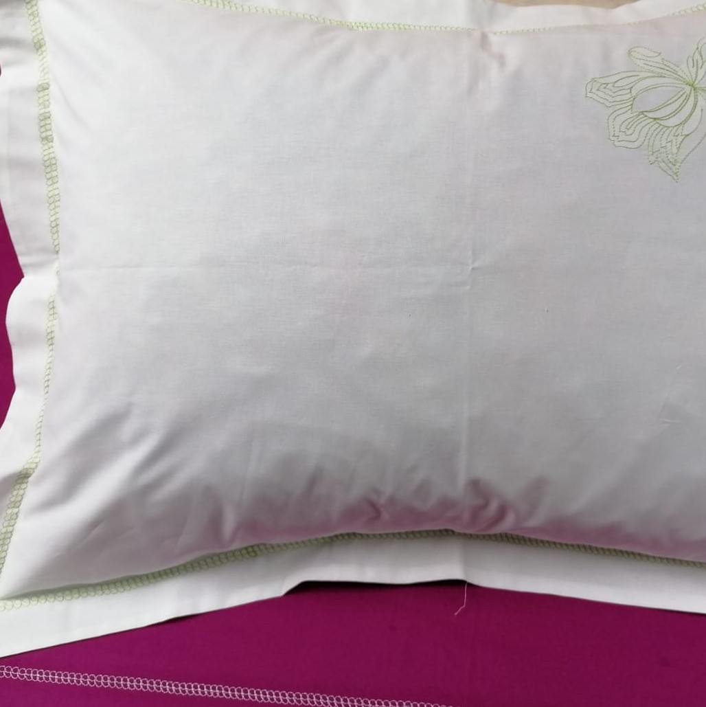 Combinatia intre culorile alb si verde crud, broderia si finisajele in cusaturi decorative, au capacitatea de a energiza o camera si de a crea o atmosfera aerisita, delicata si placuta, unde veti avea senzatia ca respirati aer curat.