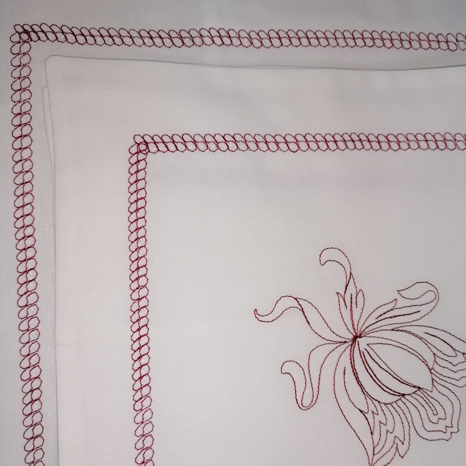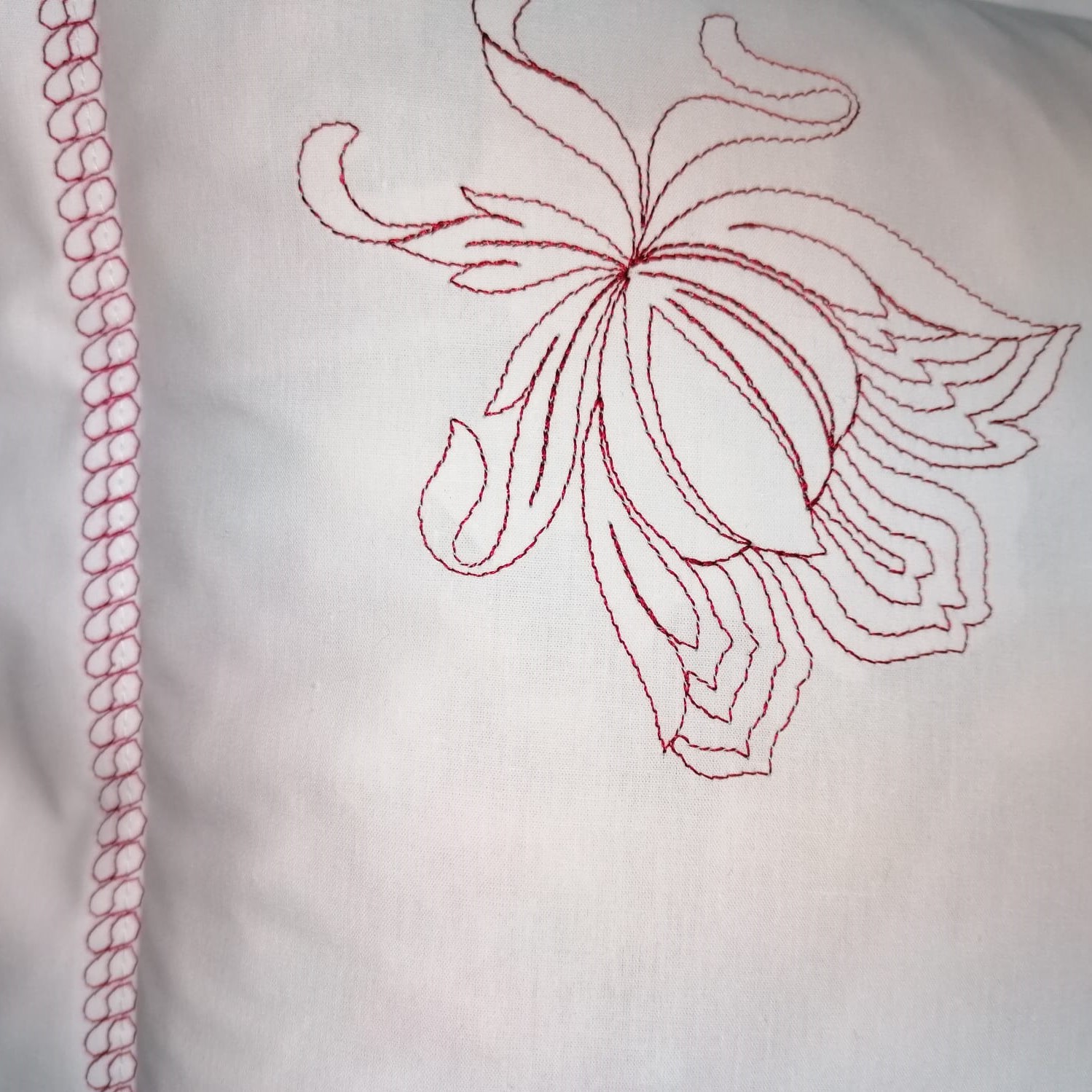 Combinatia intre culorile alb si bordeaux, broderia si finisajele in cusaturi decorative, au capacitatea de a energiza o camera si de a crea o atmosfera aerisita, delicata si placuta, unde veti avea senzatia ca respirati aer curat.