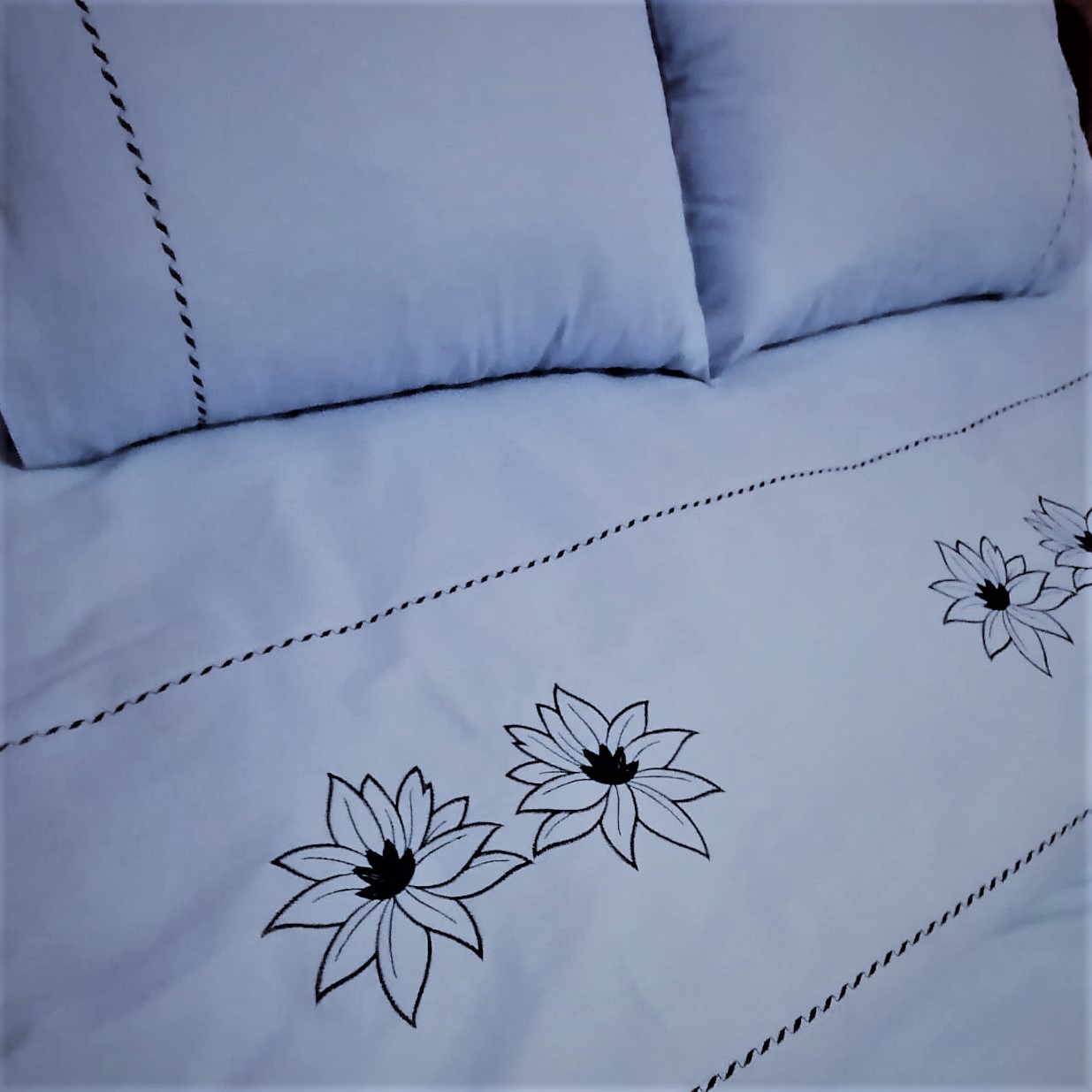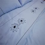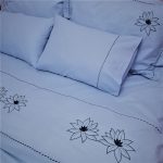 Set Husa pilota brodata 200 x 220 cm si 2 fete de perna, Casa Bucuriei, model Watter Lilly, albastru, bumbac 100%