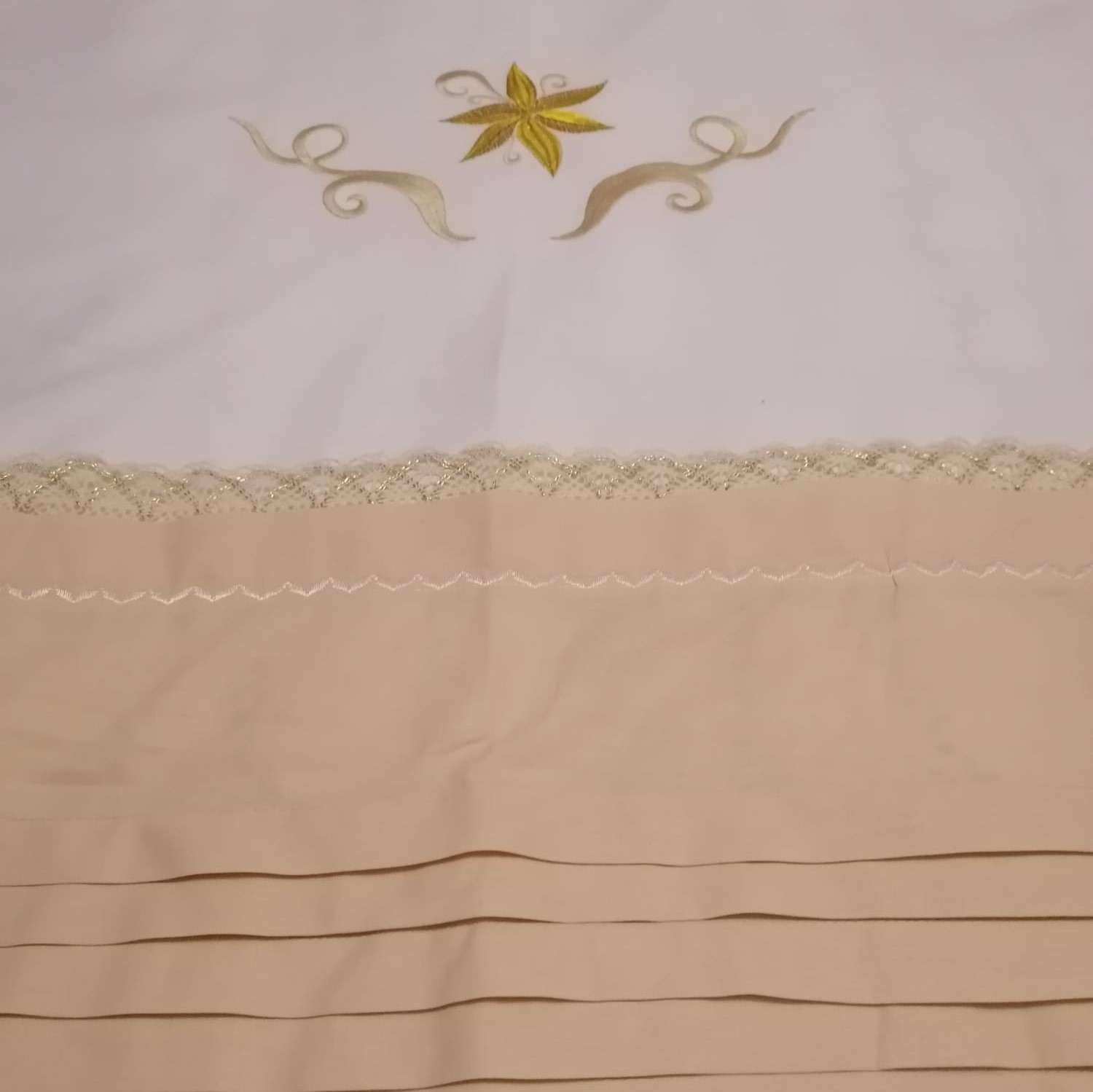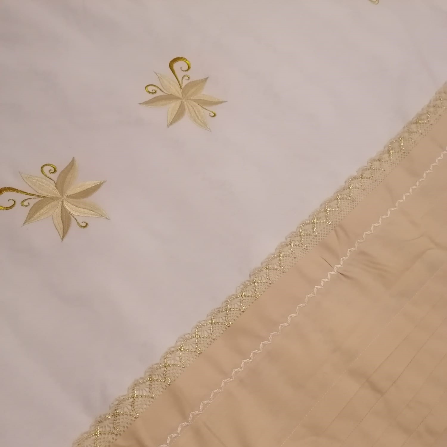 Set Husa pilota brodata 210 x 230 cm si 2 fete de perna, Casa Bucuriei, model Aura, crem/alb, bumbac 100%