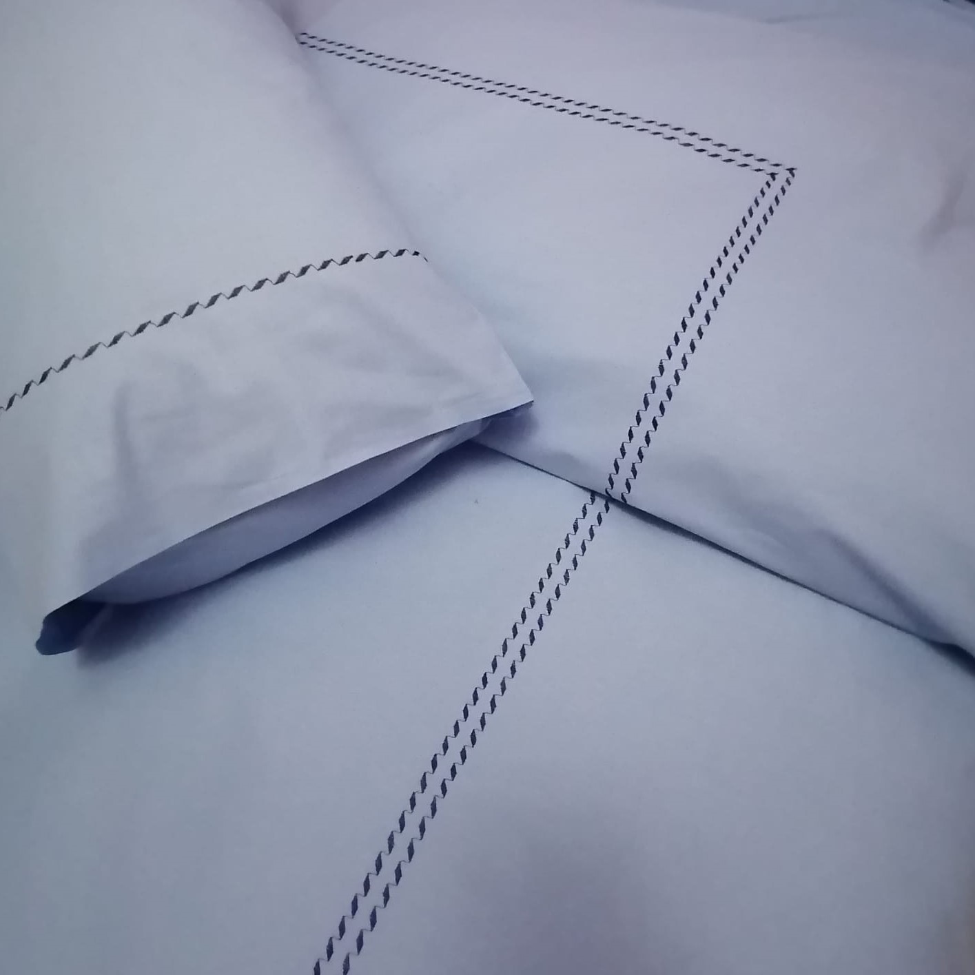 Set Husa pilota brodata 240 x 260 cm si 2 fete de perna, Casa Bucuriei, model Simple Lines, albastru, bumbac 100%