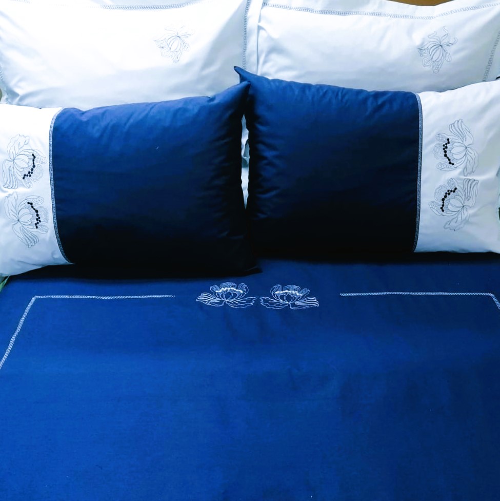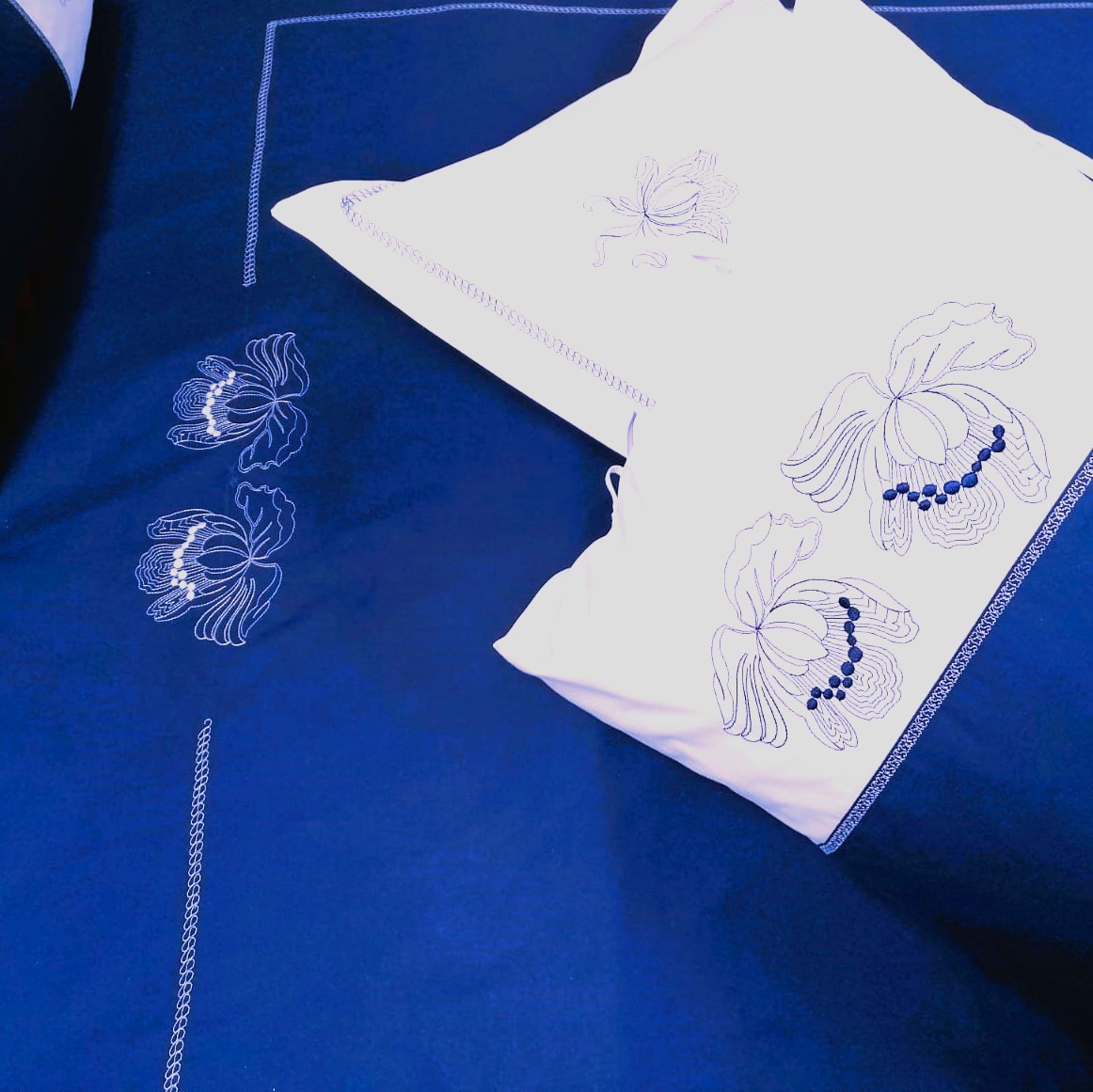 Setul de pat este lucrat manual, cu grija la fiecare detaliu.