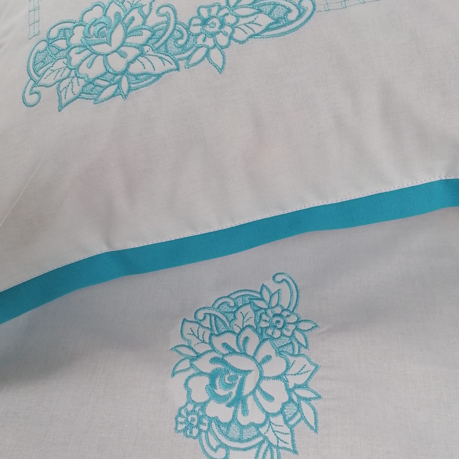 Combinatia extrem de vie si vesela intre culorile alb si albastru turcoaz, broderia si finisajele in cusaturi decorative, au capacitatea de a energiza o camera si de a crea o atmosfera aerisita, delicata si placuta, unde veti avea senzatia ca respirati aer curat in locuinta d-voastra.
