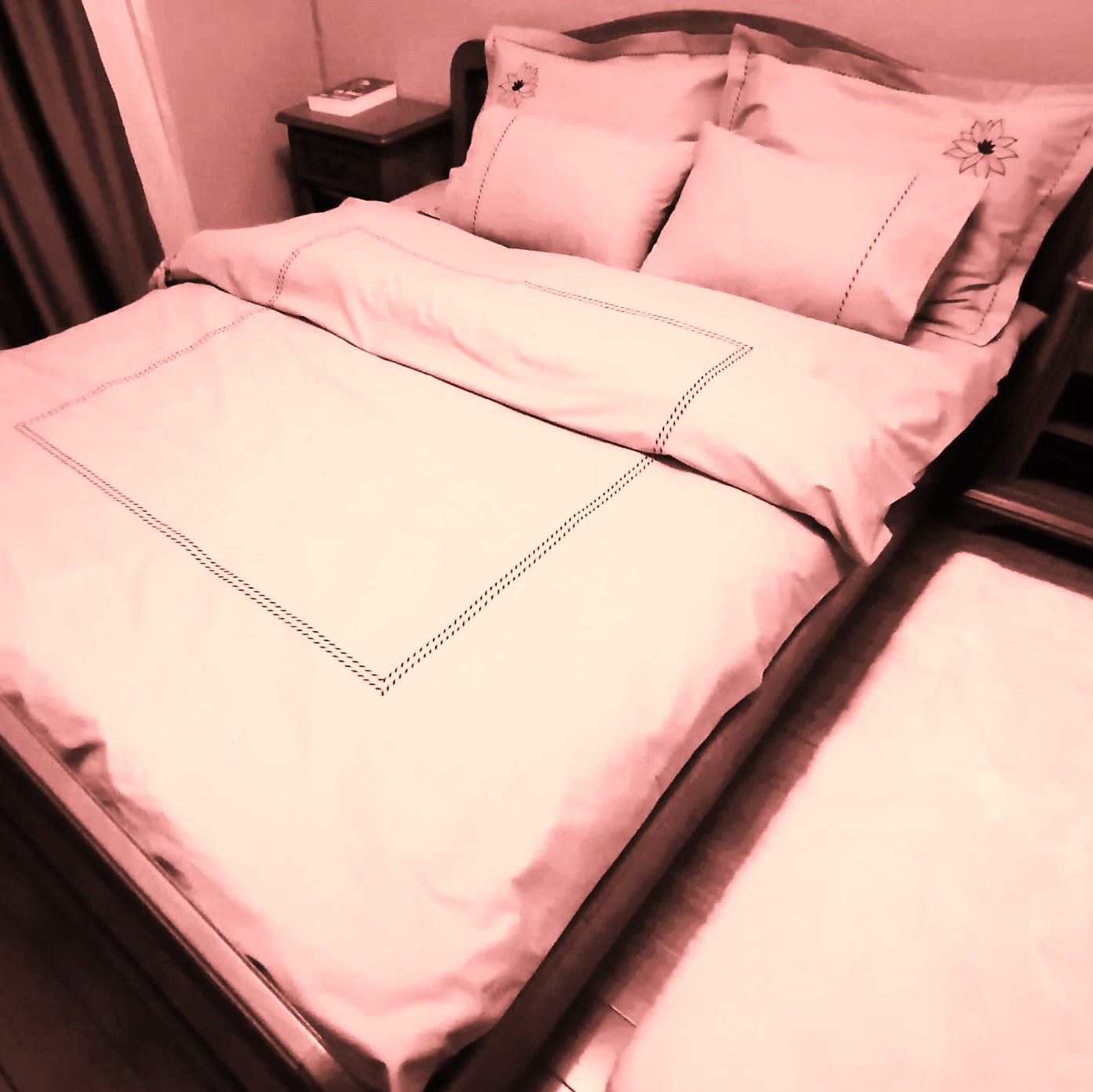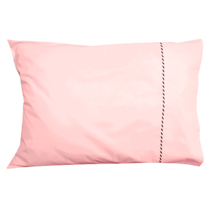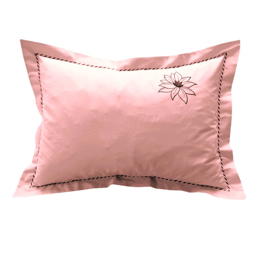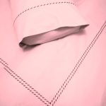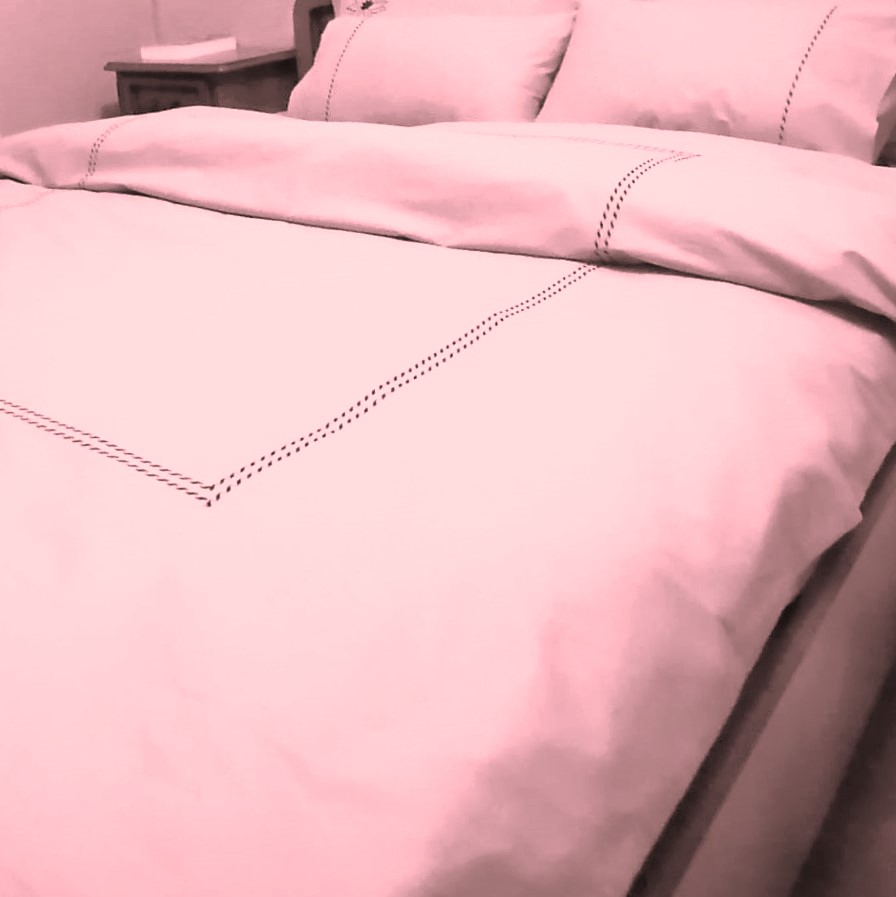 Set lenjerie de pat, marime 280 x 300 cm, brodata, Casa Bucuriei, model Simple Lines, 6 piese, roz pudra, bumbac 100%