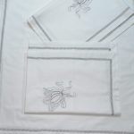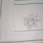 Set lenjerie pentru un pat dublu, din bumbac satinat, cu broderie, detalii si finisaje decorative.