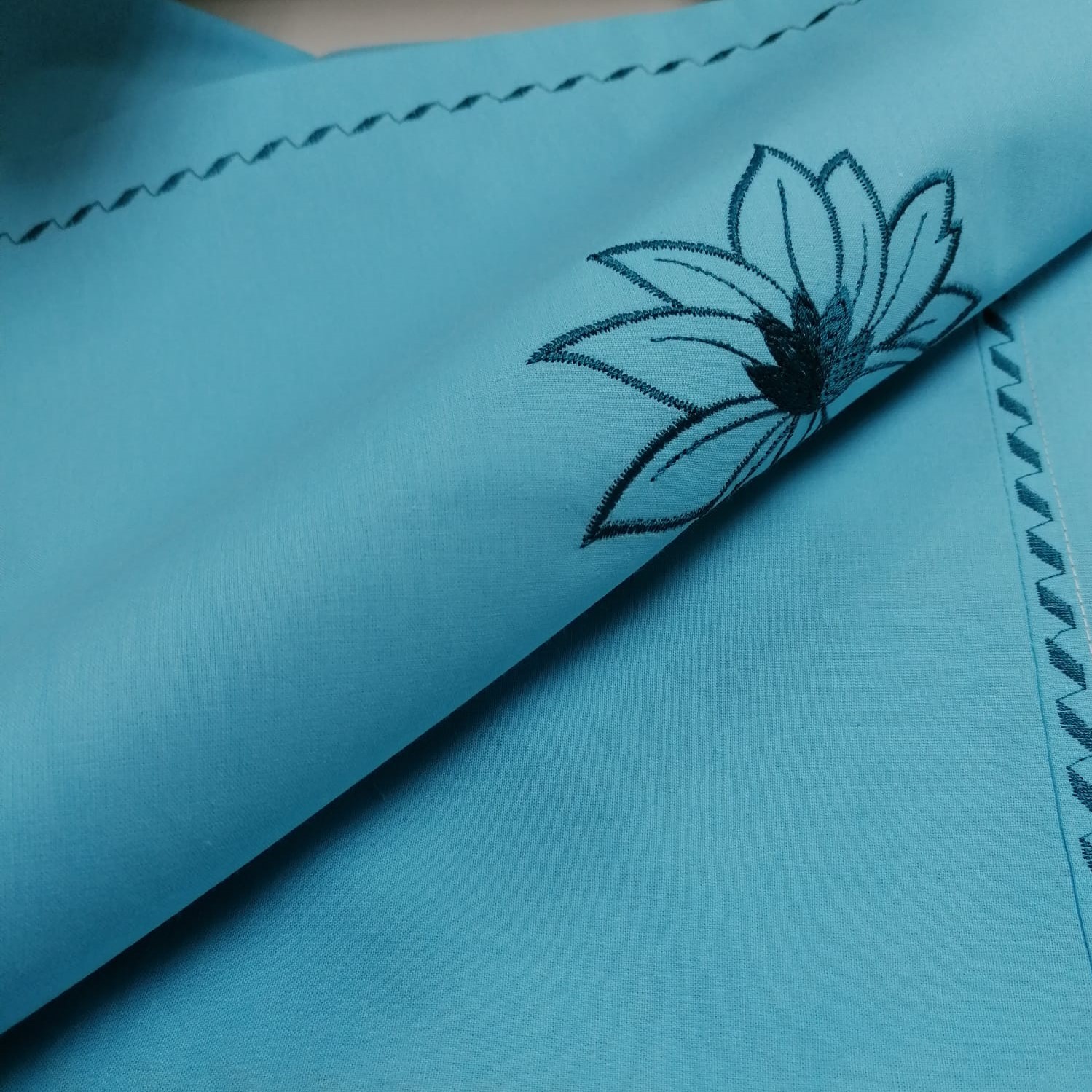 Set lenjerie pat 280 x 280 cm, Casa Bucuriei, model Water Lilly, 3 piese, albastru turcoaz, bumbac ranforce 100%, broderie