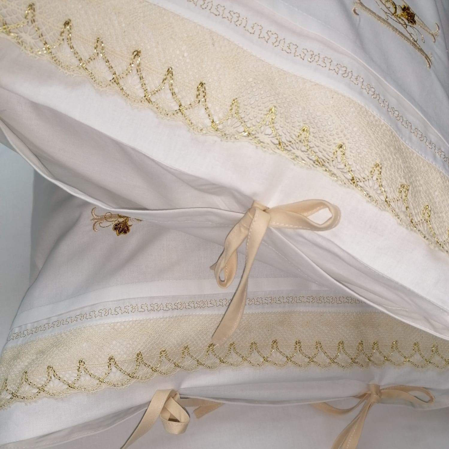 2 fete de perna 50 × 70 cm, personalizate prin broderie cu initiala numelui ( Dupa plasarea comenzi veti fi sunat pentru a ne comunica initialele pe care sa le brodam pe fetele de perna)