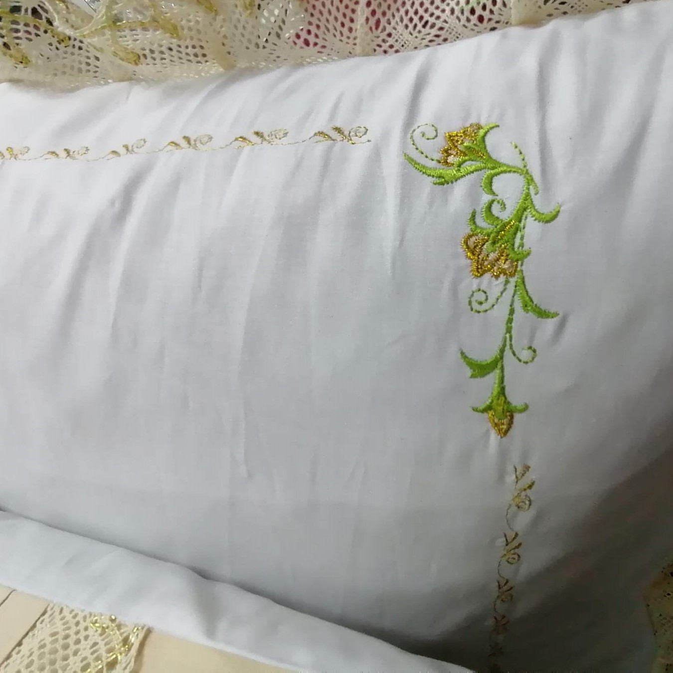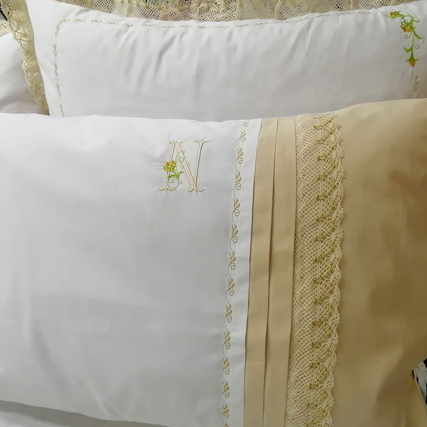 2 fete de perna 50 × 70 cm, personalizate prin broderie cu initiala numelui ( Dupa plasarea comenzi veti fi sunat pentru a ne comunica initialele pe care sa le brodam pe fetele de perna)