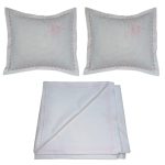 Set lenjerie pentru un pat matrimonial, din bumbac satinat, cu broderie, detalii si finisaje decorative.