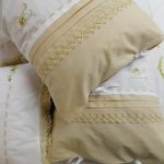Set lenjerie pat brodata 260 x 280 cm, Casa Bucuriei, model Dulcis, 6 piese, alb/bej, bumbac percale100%, marime pilota 210 x 230 cm