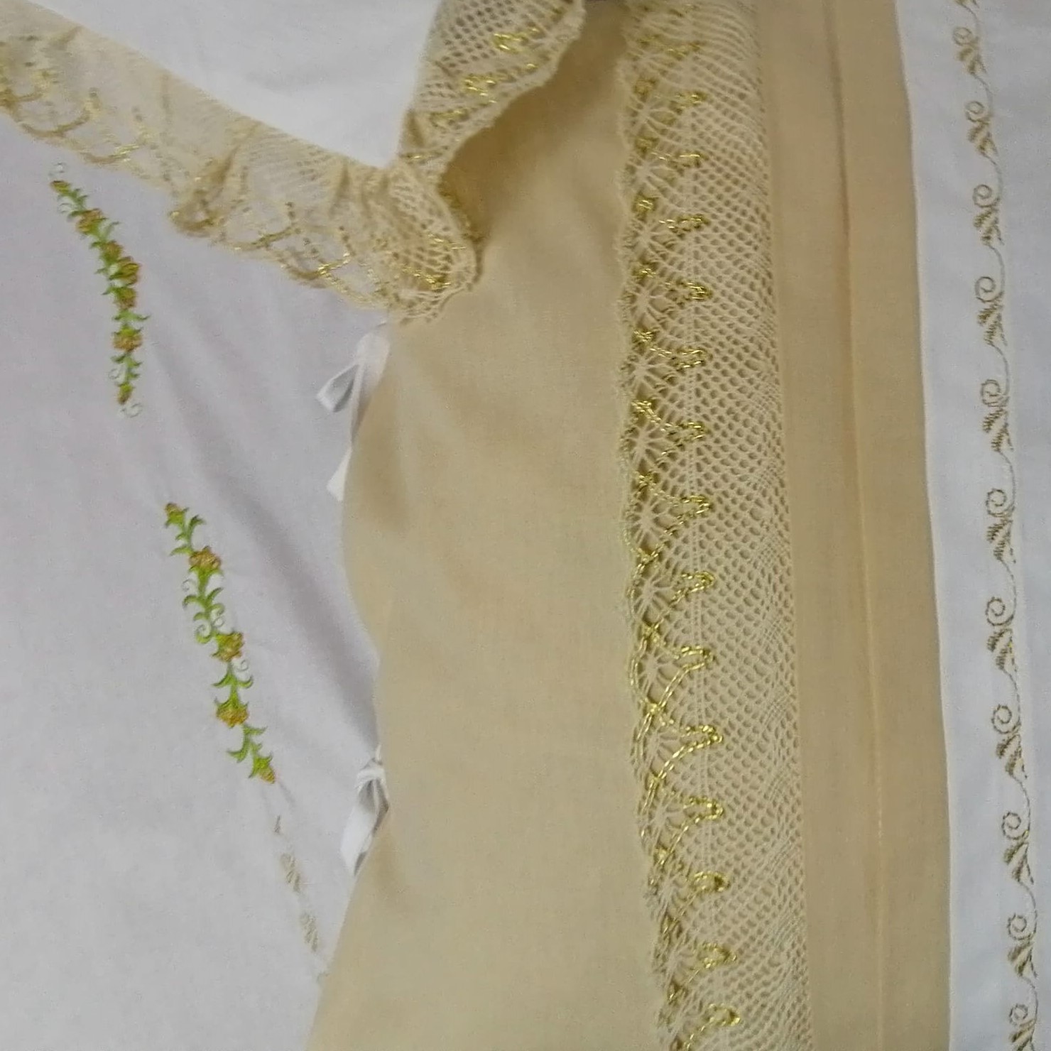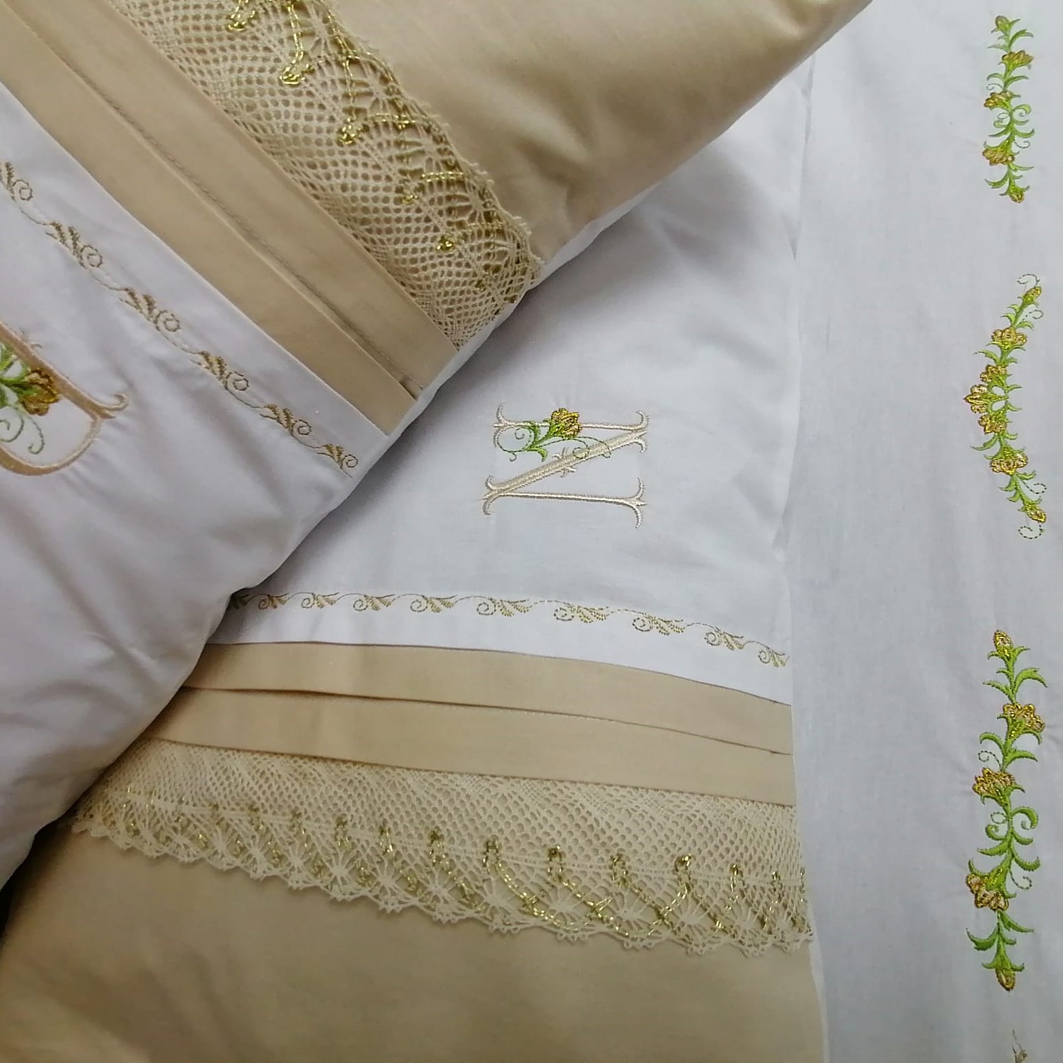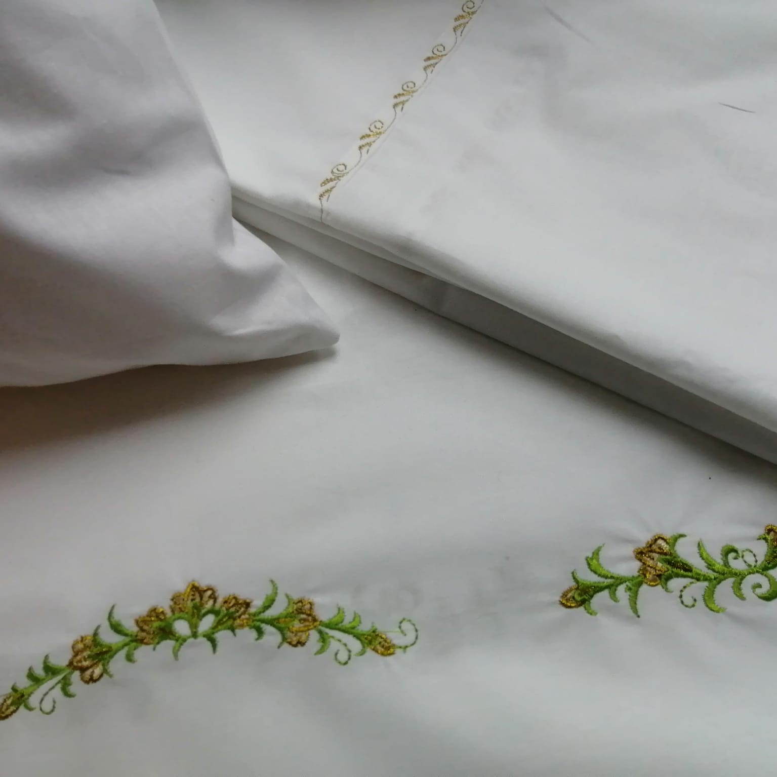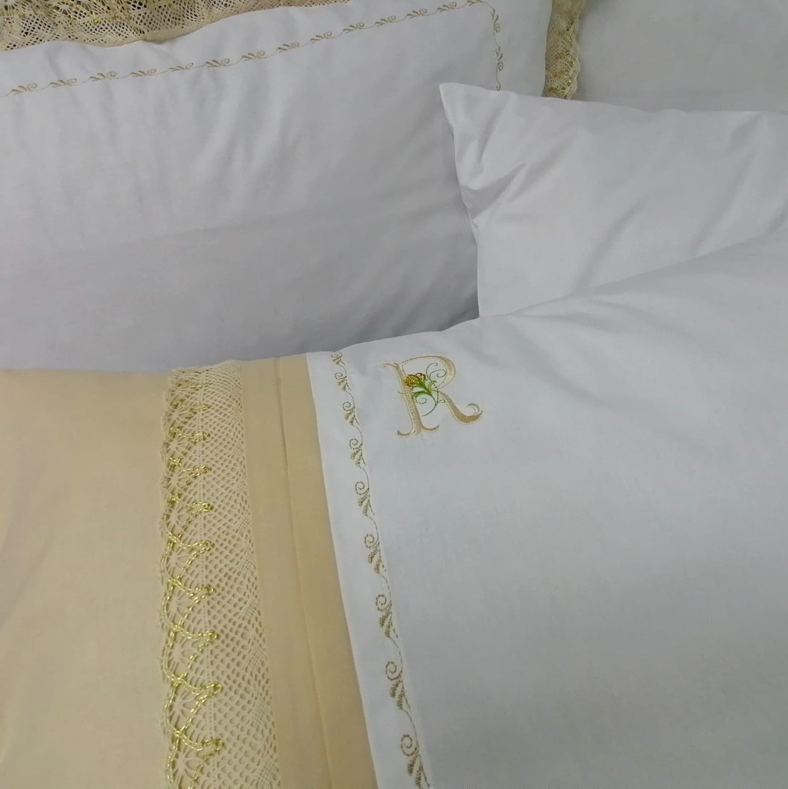 1 cearsaf pat cu chenar brodat cu ata aurie 280 x 300 cm,