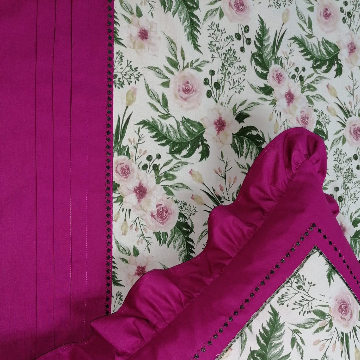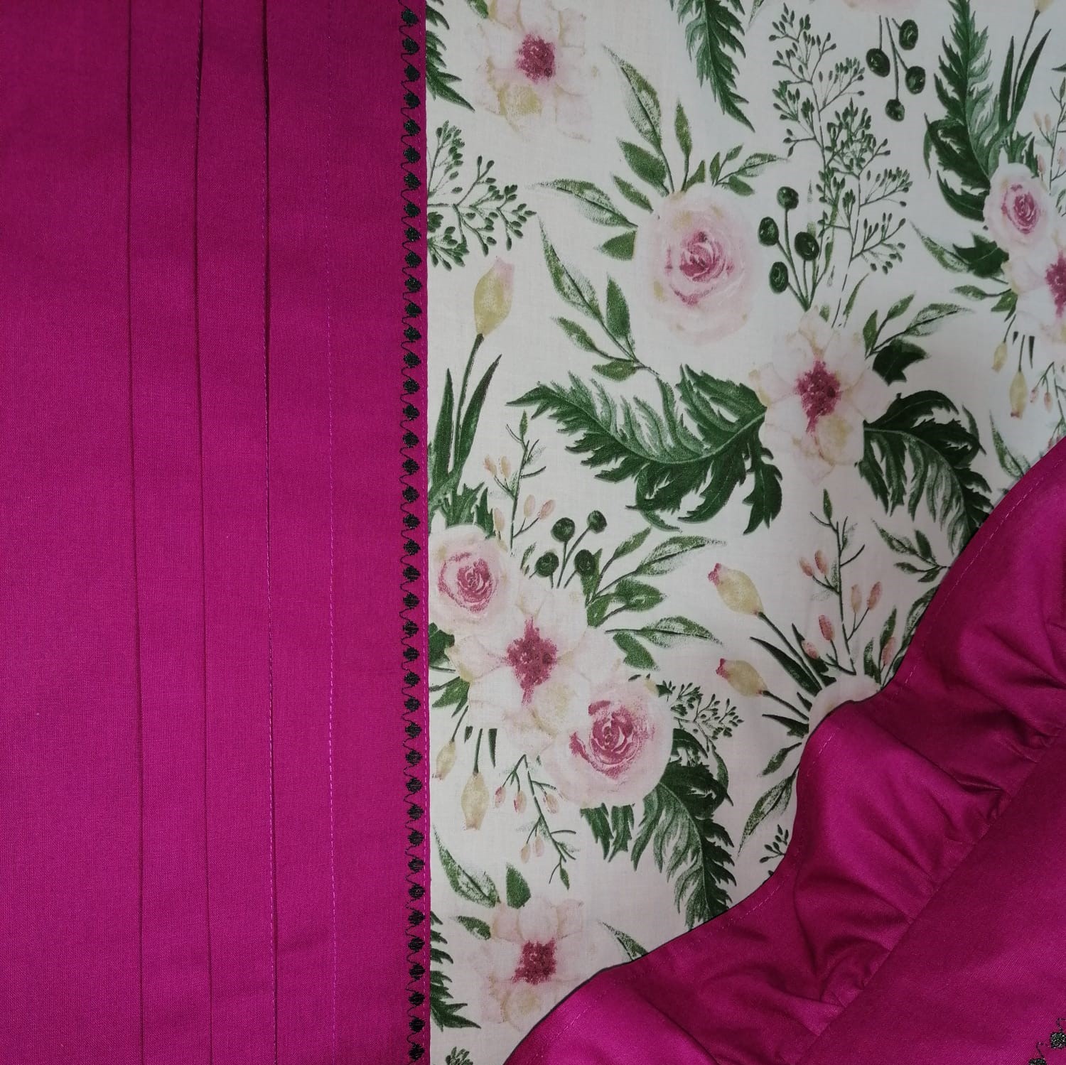 Combinatia extrem de vie si vesela intre culori, finisajele in cusaturi decorative si volanase, au capacitatea de a energiza o camera si de a crea o atmosfera aerisita, delicata si placuta, unde veti avea senzatia ca respirati aer curat. Culoarea roz fucsia are atat proprietati estetice cat si terapeutice, promitand un decor interior sic si rafinat, feminin.