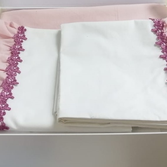 Fii primul care scrii o recenzie pentru „Set lenjerie pat king Casa Bucuriei, 3 piese, dantela guipure roz vintage si volane, alb/roz, bumbac percale100%, 1 x cearsaf pat 240/260 si 2 x husa perna 50/70”