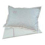Set lenjerie pentru un pat o persoana, din bumbac satinat, cu broderie, detalii si finisaje decorative.