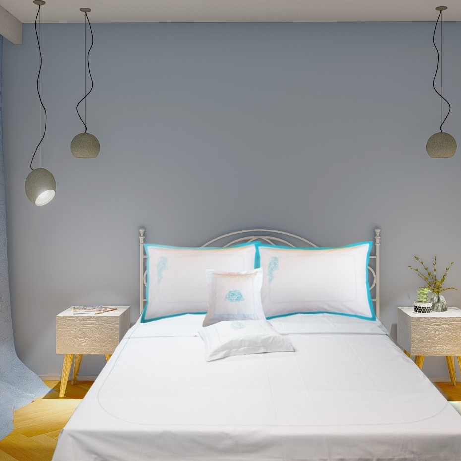 Combinatia extrem de vie intre culorile alb si albastru turcoaz, broderia si contrastul de culori, au capacitatea de a energiza o camera si de a crea o atmosfera aerisita si curata.