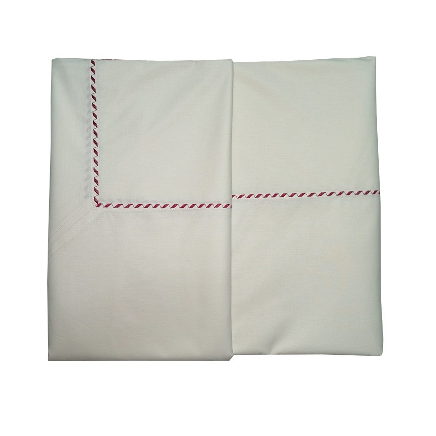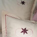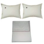 Set lenjerie pentru un pat dublu matrimonial, din bumbac satinat, cu broderie, detalii si finisaje decorative.