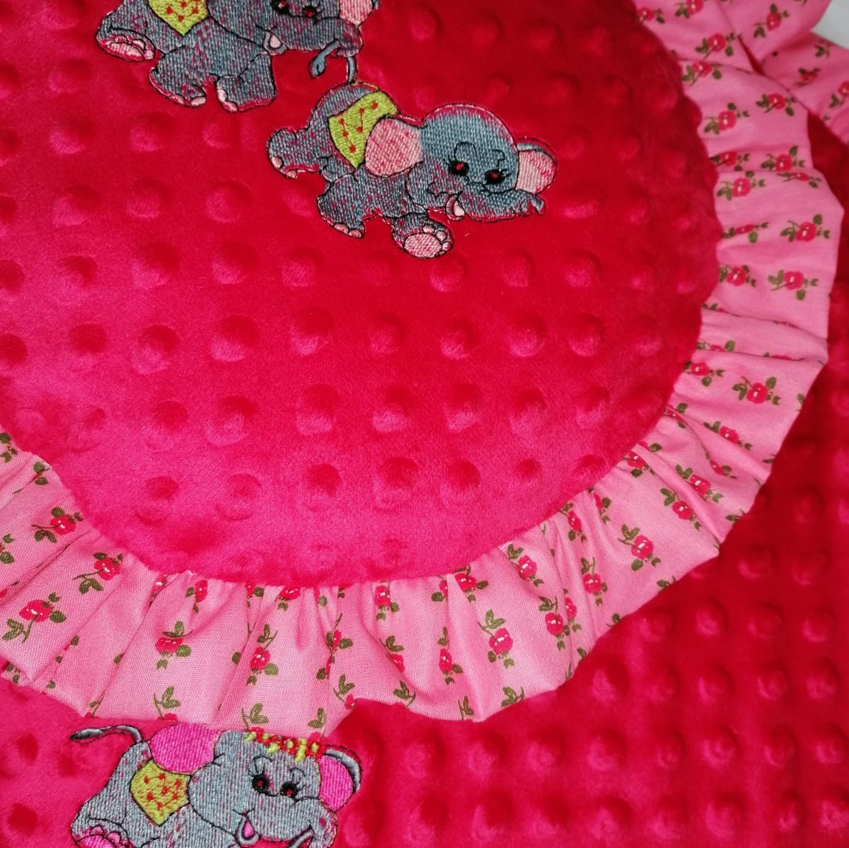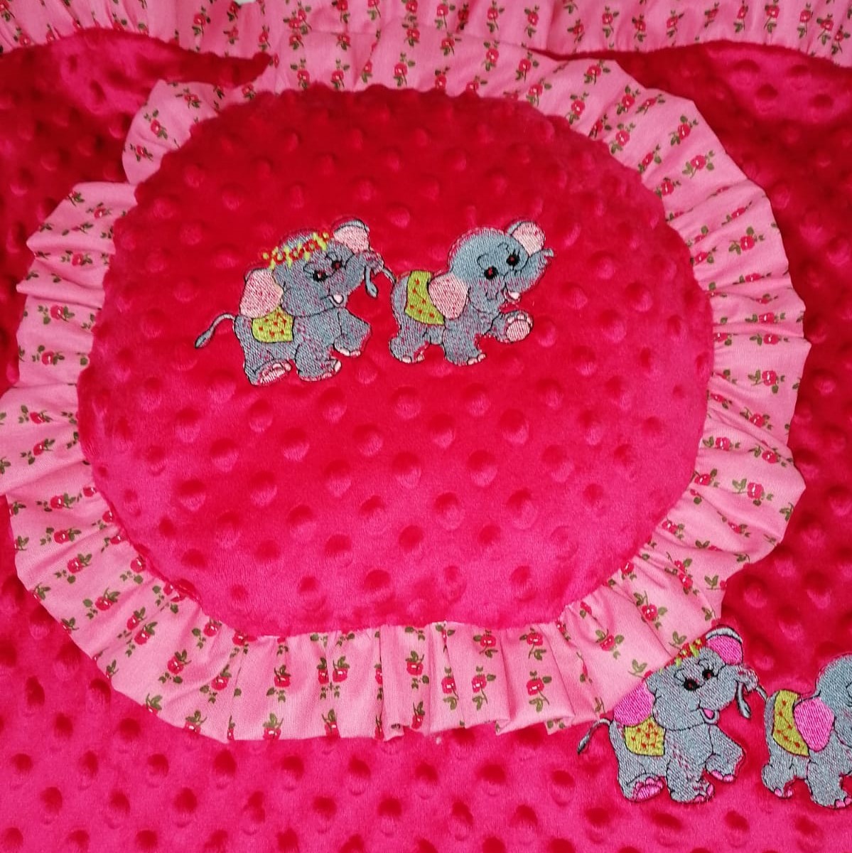 Paturica cu broderie si finisaj cu volanase din bumbac si fata dubla este un decor minunat pentru camera copiilor. Datorita texturi catifelate, confectionat din plus minky si dublat cu bumbac matural,va atrage atat sugarii, cat si copiii mai mari. Este perfect ca decor de fotografiere, patura de jocuri sau baldachin.