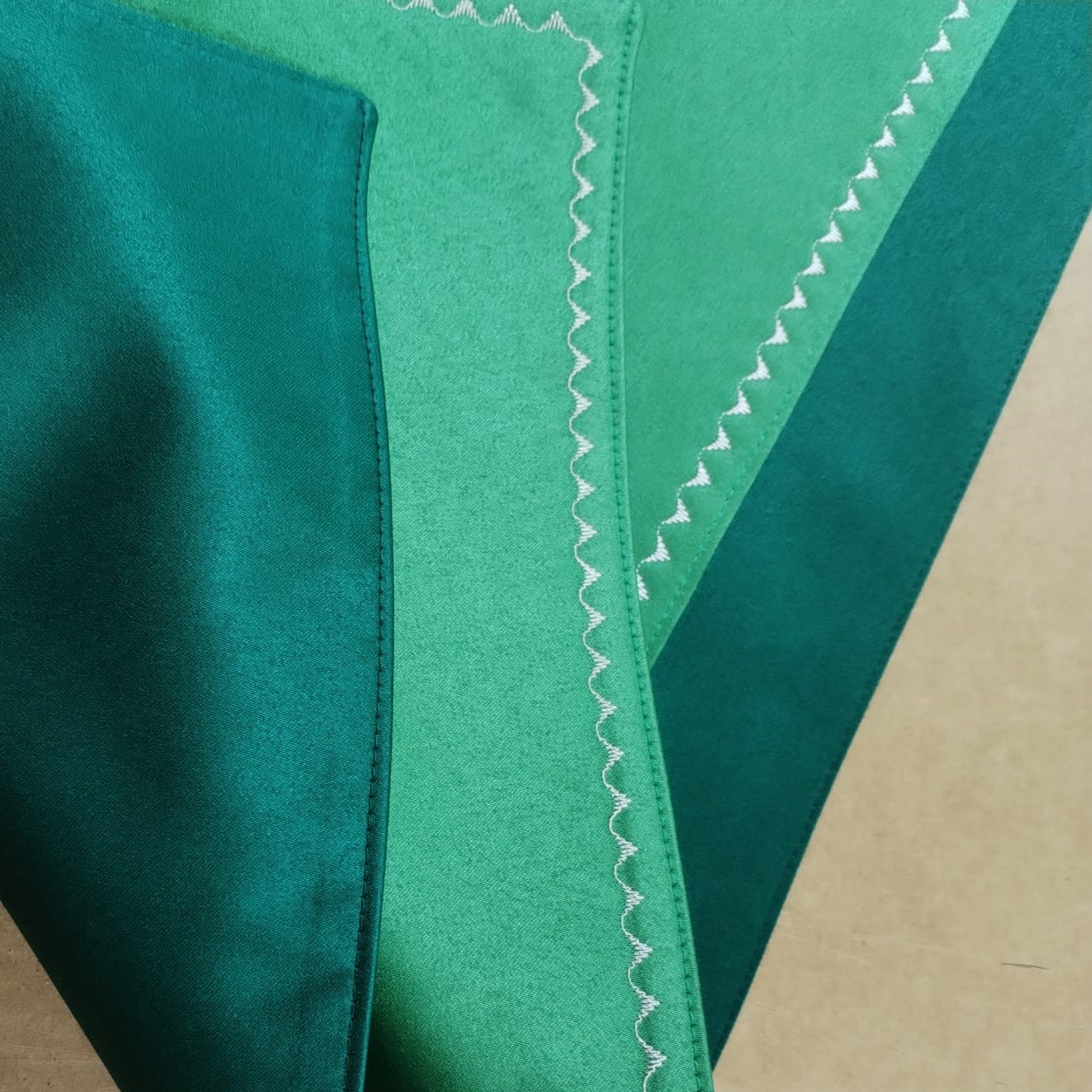 Modelul deosebit si elegant, tesatura satinata, precum si bordura ornamentata cu broderie, vor da un aer aparte intregii incaperi, intregind bucuria si buna dispozitie specifice petrecerilor sau reuniunilor in familie.