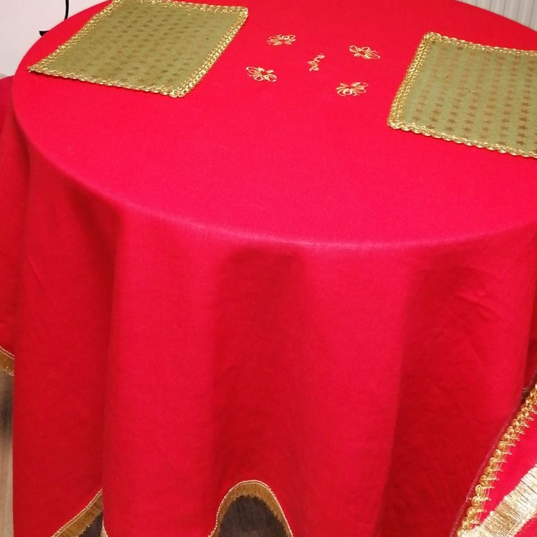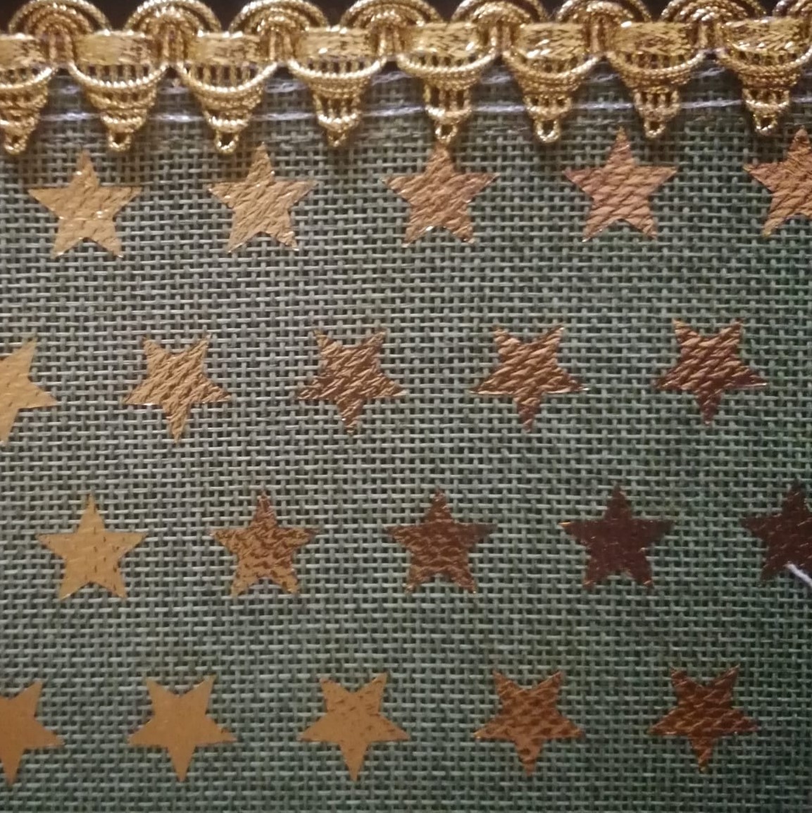 Suport farfurie verde cu  Stelute aurii si bordura din galon auriu, este ideal pentru aranjamentele de iarna.