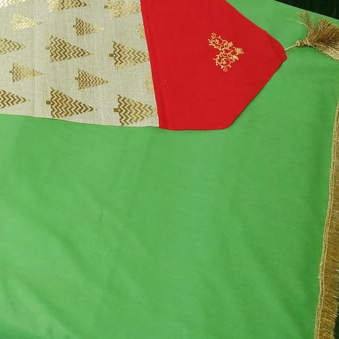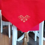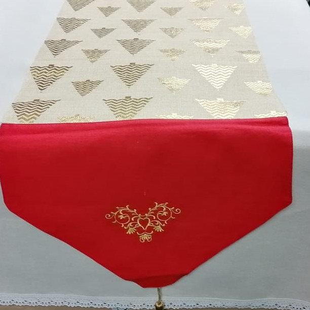 Traversa masa cu broderie si bordura din paspoal, este ideala pentru aranjamentele de iarna.