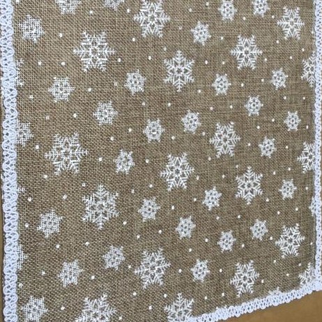 Traversa masa cu Stelute albe si bordura este ideala pentru aranjamentele de iarna.