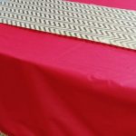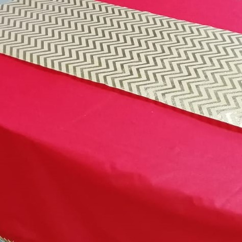 Traversa masa zig zag auriu este ideala pentru aranjamentele de iarna.